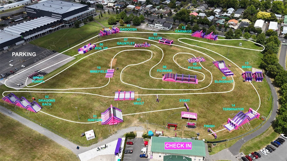 ニンジャランは ニュージーランドで2キロ半の 充電可能な障害物コースで 壮大な夏の冒険です広州バリー工業が専門的に製造したものです., Ltd. 膨らませられる製品のための高品質の製造工芸を活用して,我々はイベントのための世界クラスの膨らませられる障害物コースを建設しました,ニュージーランドでのこの楽しい全国大会の成功に.